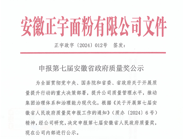 申報(bào)第七屆安徽省政府質(zhì)量獎(jiǎng)公示